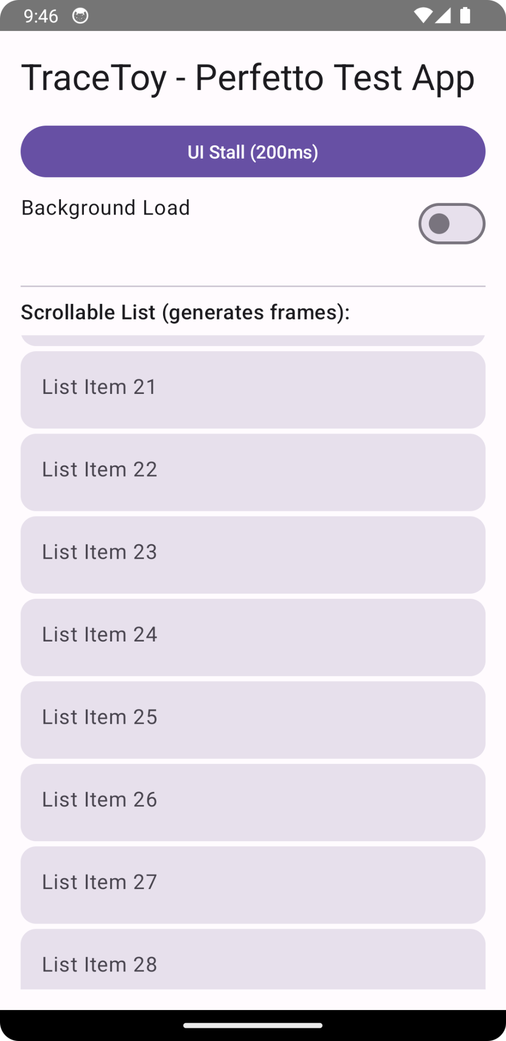 To make iteration easy, I built a tiny Jetpack Compose test app that intentionally creates recognizable mobile app performance signals: